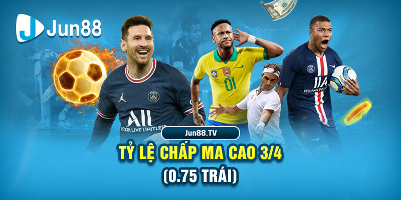 Một hình thức cược kèo Ma Cao tại Jun88 khác cũng rất phổ biến đó là tỷ lệ chấp 3/4, tương đương với 0.75 trái. Cách đọc tỷ lệ chuẩn xác sẽ được chúng tôi phổ biến cho anh em tân binh ngay sau đây: